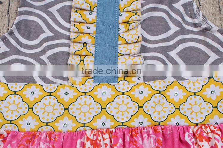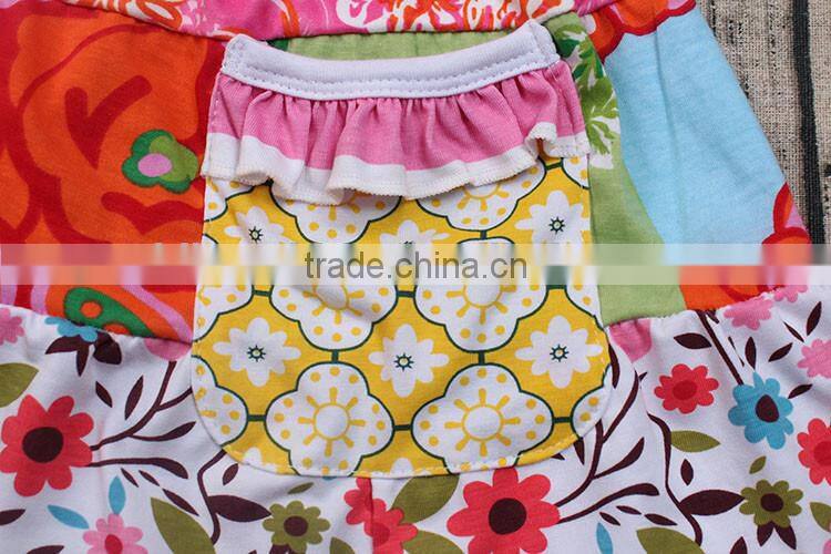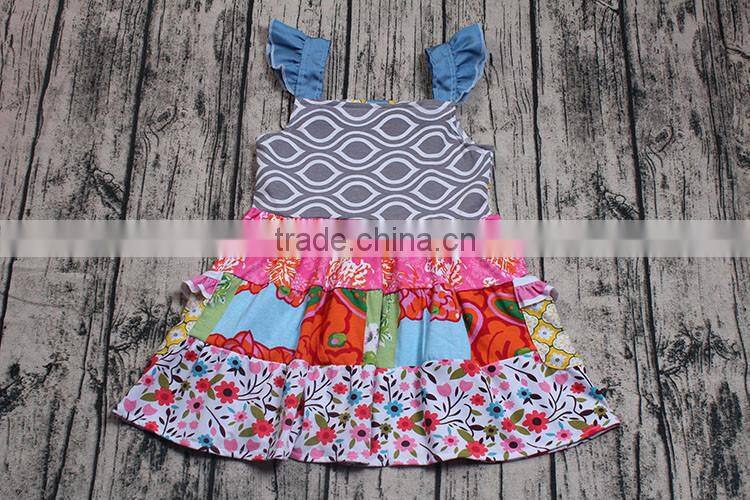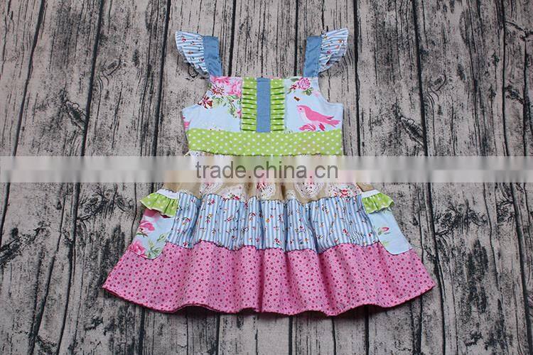 2017 flutter sleeve patchwork summer dresses baby girls dress designs