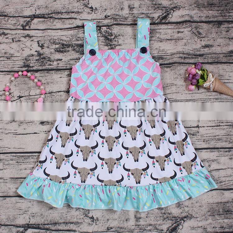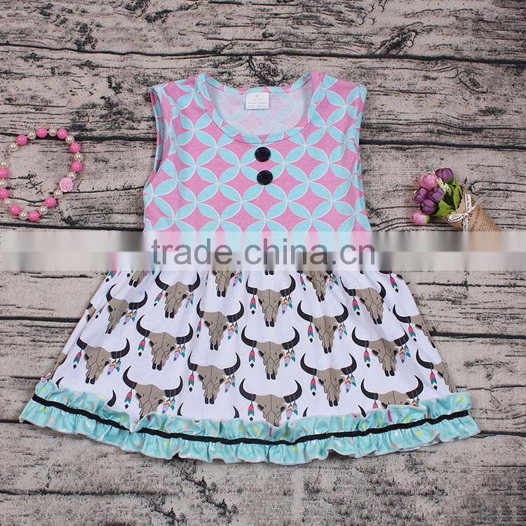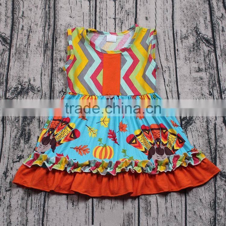 Fashion popular style wholesale Thanksgiving day boutique dresses for baby girls turkey print smocked design dress party skirts