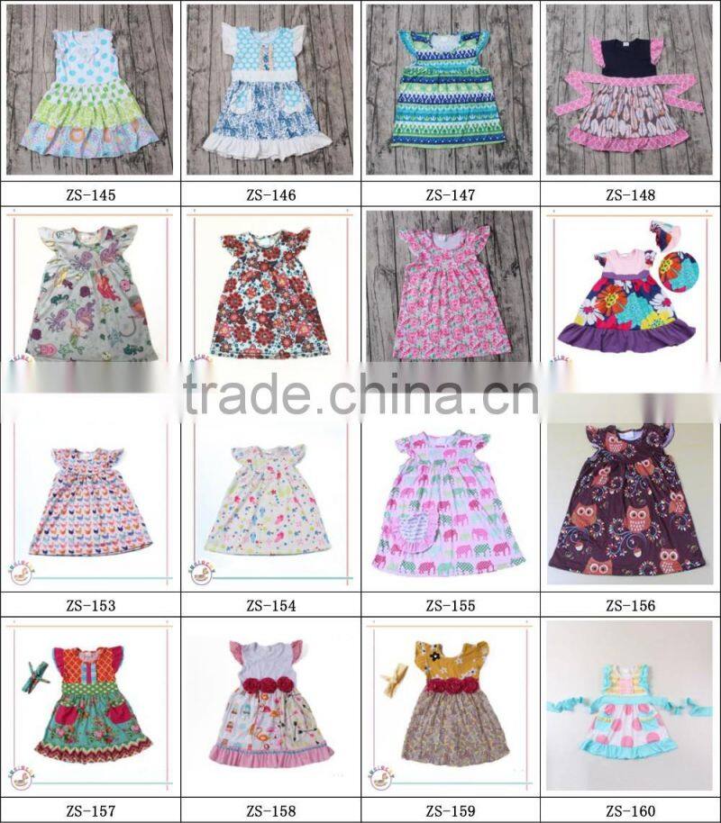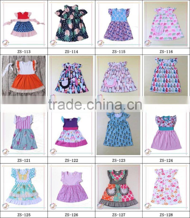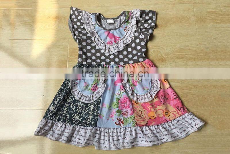 summer dress for girls flutter sleeve printing lace ruffle dress have pocket latest dress styles children frocks designs