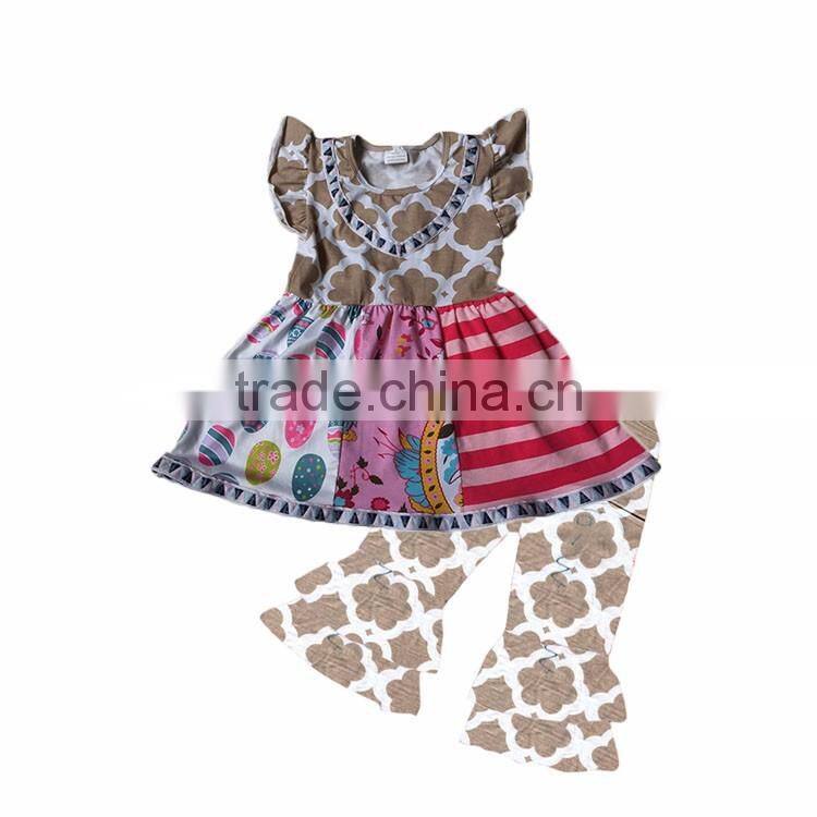 baby clothes Ruffle chevron pant And Tunic Boutique Clothing flutter sleeve kids modeling clothes wholesale kids urban clothing