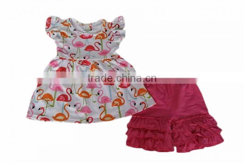 children clothes flutter sleeve flamingo pattern top with ruffle shorts bulk wholesale kids clothing kids clothes unique