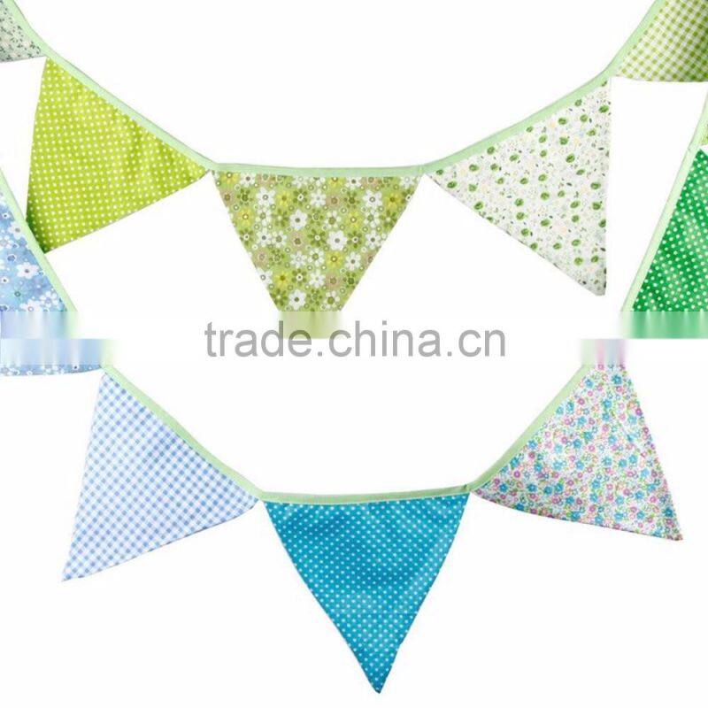 Durable 100% cotton fabric flag bunting banner wedding, birthday, party decoration