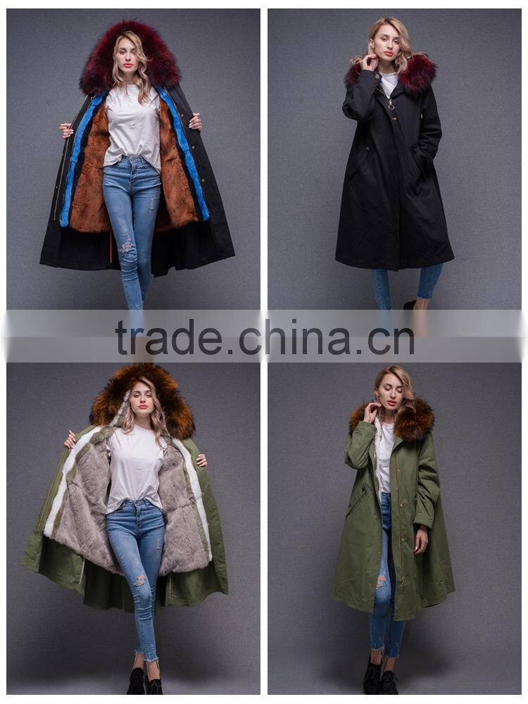 Raccoon fur collar + rex rabbit fur liner + 100% cotton shell