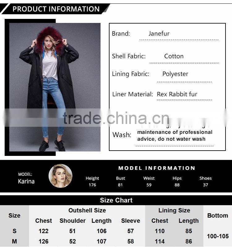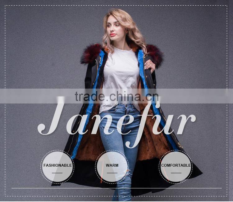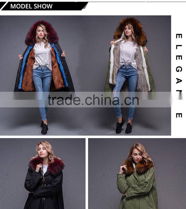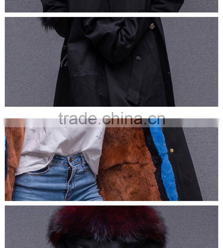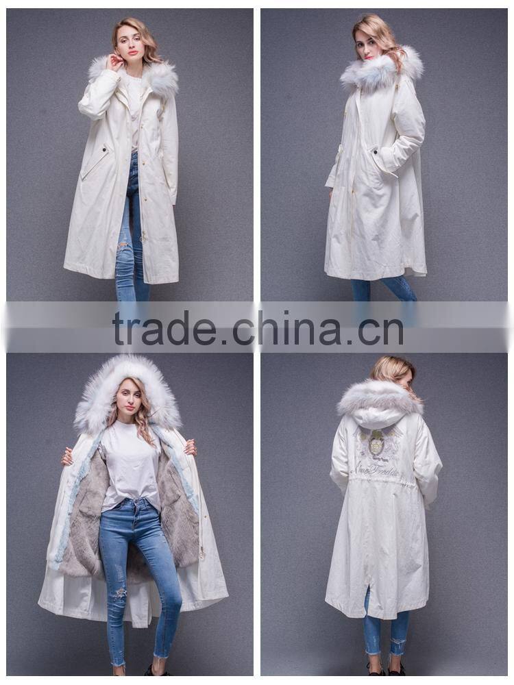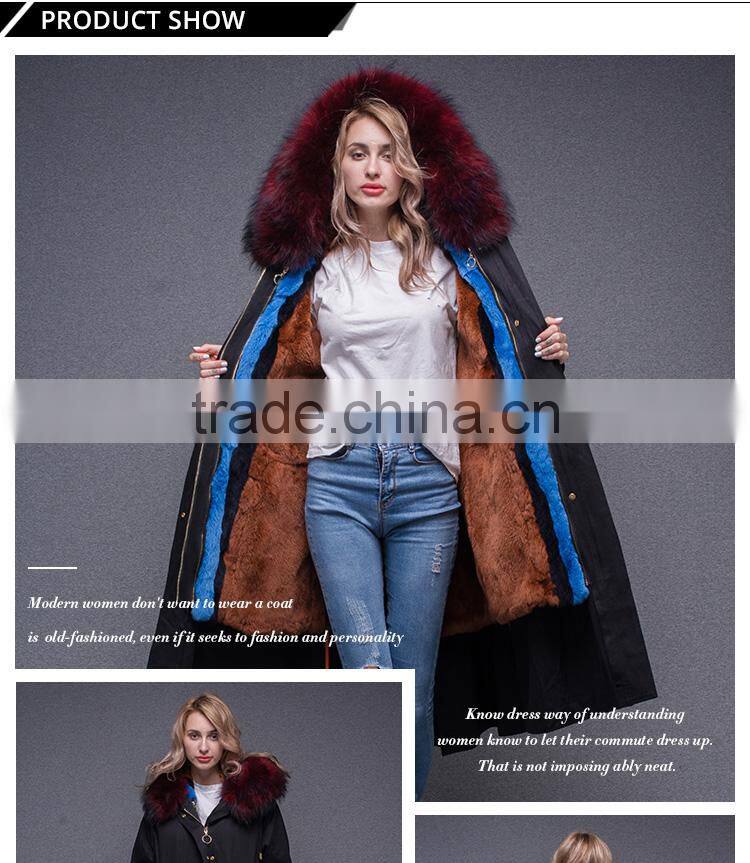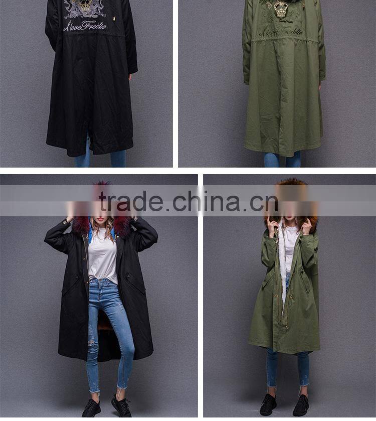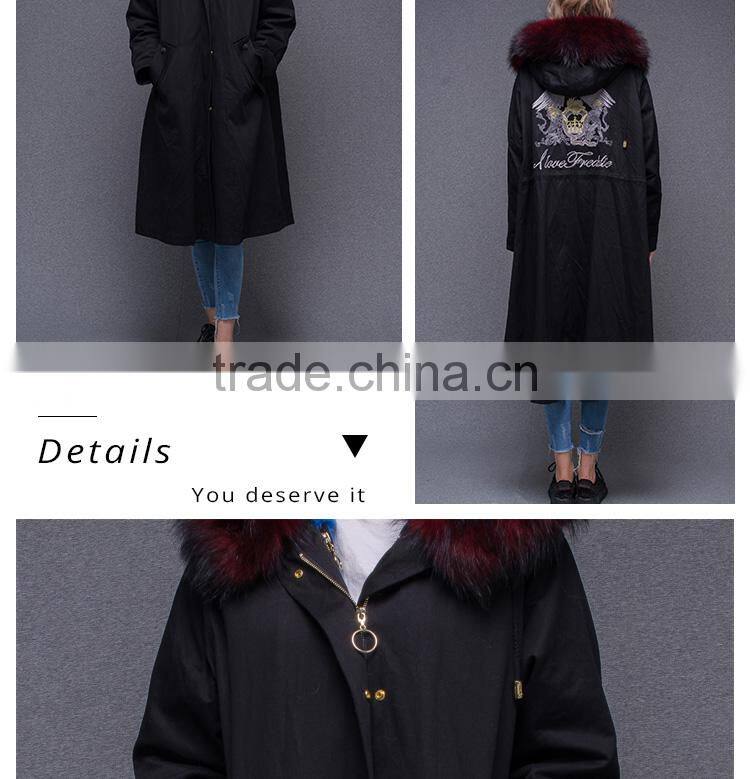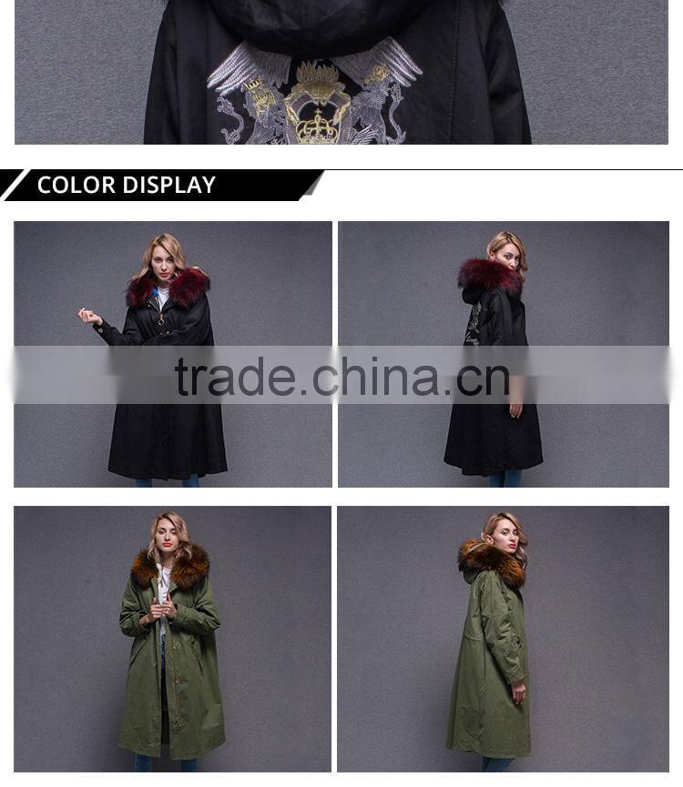 2017 Women Long Sleeve Winter Real Raccoon Fur Collar Real Rabbit Fur Lined Parka With Embroidery