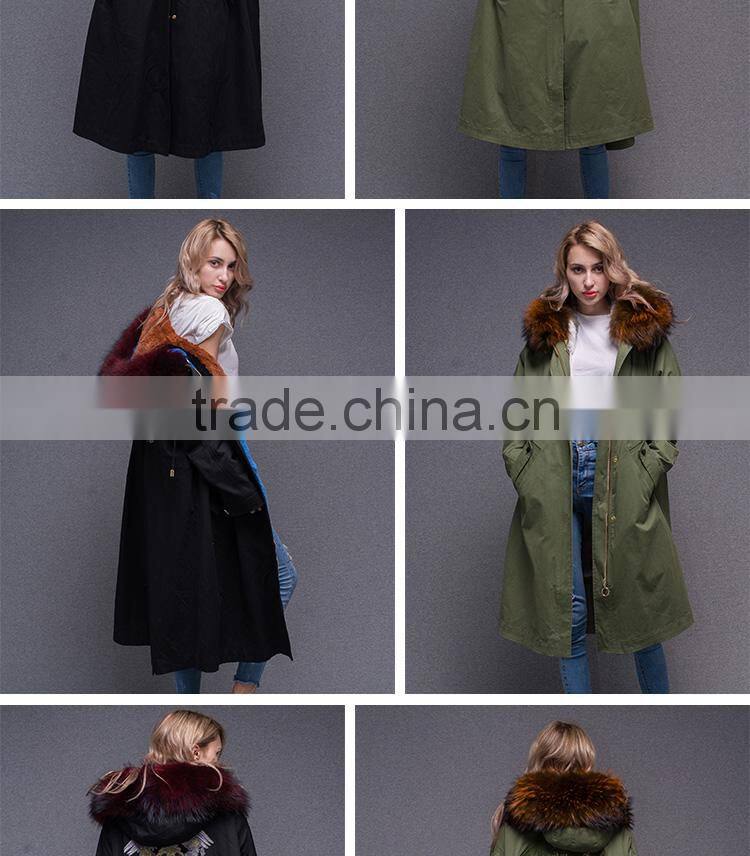 | Model | 2017 Women long sleeve winter real raccoon fur collar real rabbit fur lined parka with embroidery |