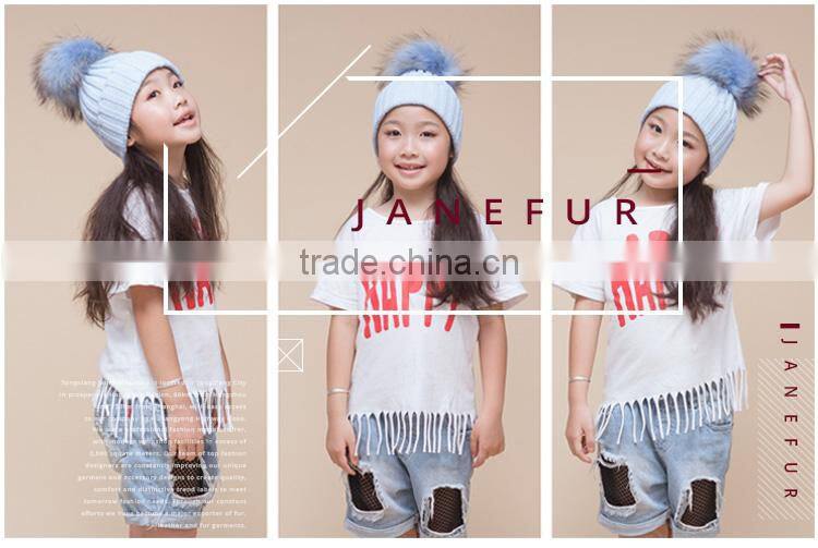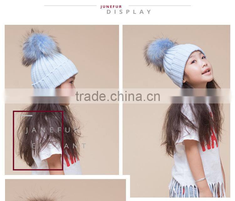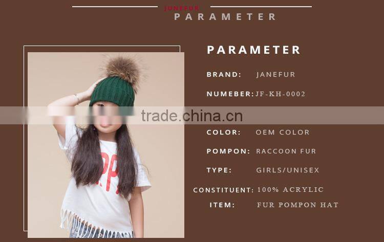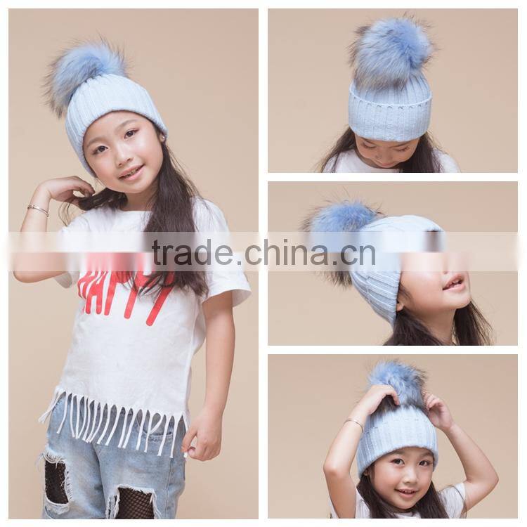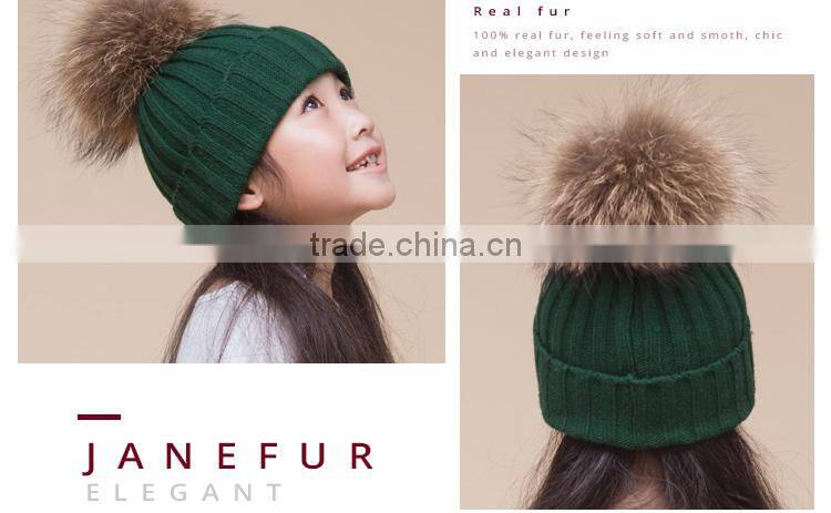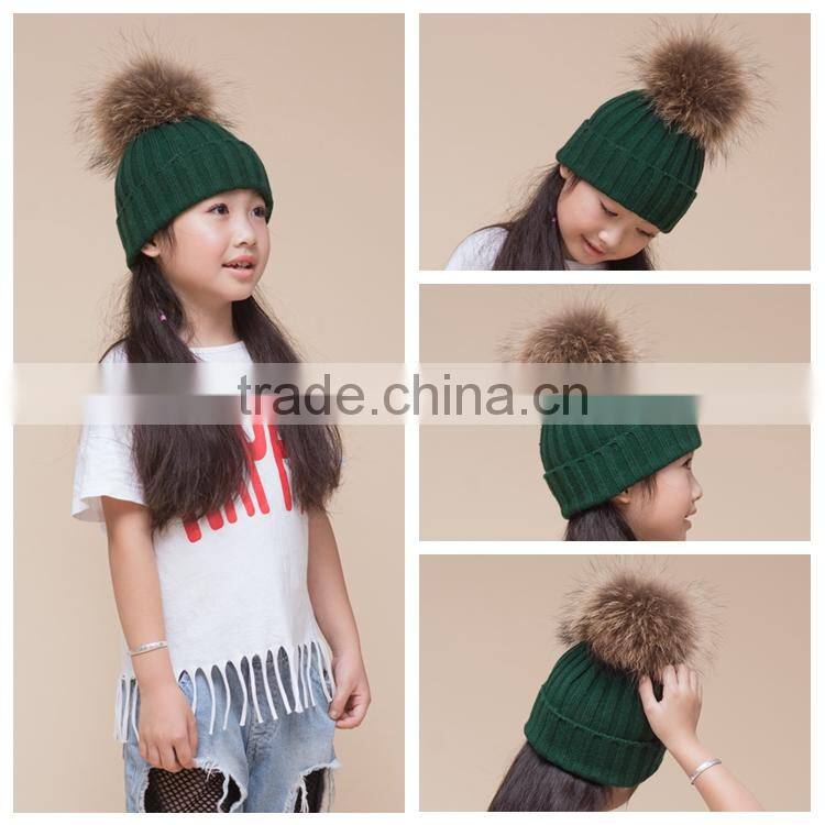 Fashion Design Knit Winter With Big Real Raccoon Fur Ball Crochet Baby Beanie Hat