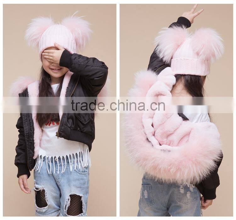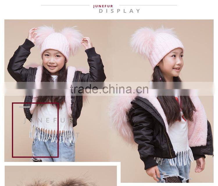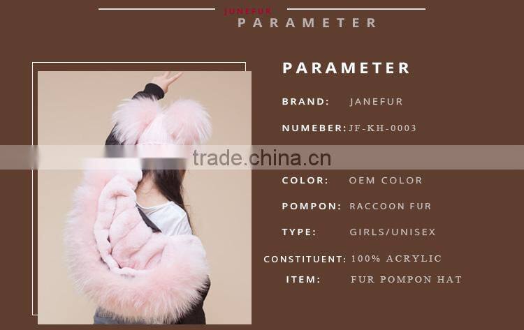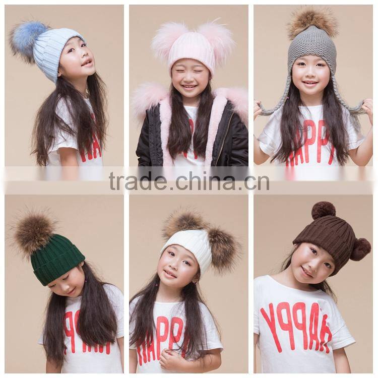 Fashion Design Custom Winter With Big Real Raccoon Fur Ball Crochet Baby Beanie Hat