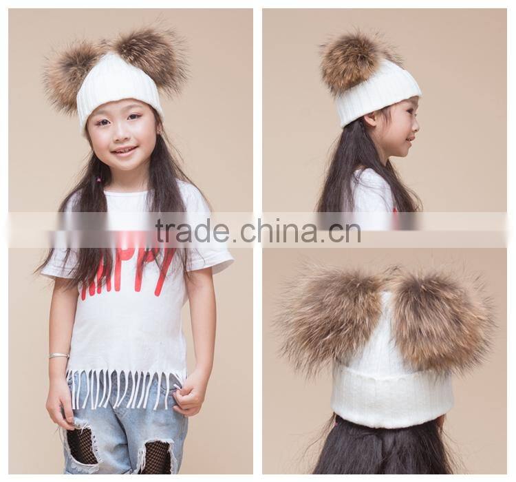 | Model | Top quality knitting hat with raccoon fur pom poms |