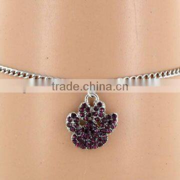 8" long/metal chain/purple crystal/0.75" paw print/lobster claw closure/petite bracelet