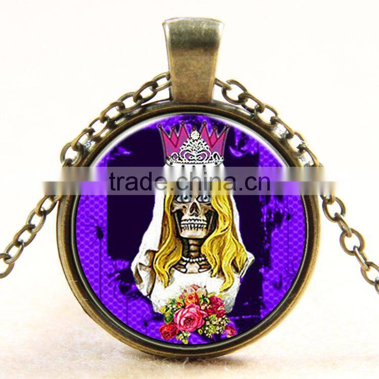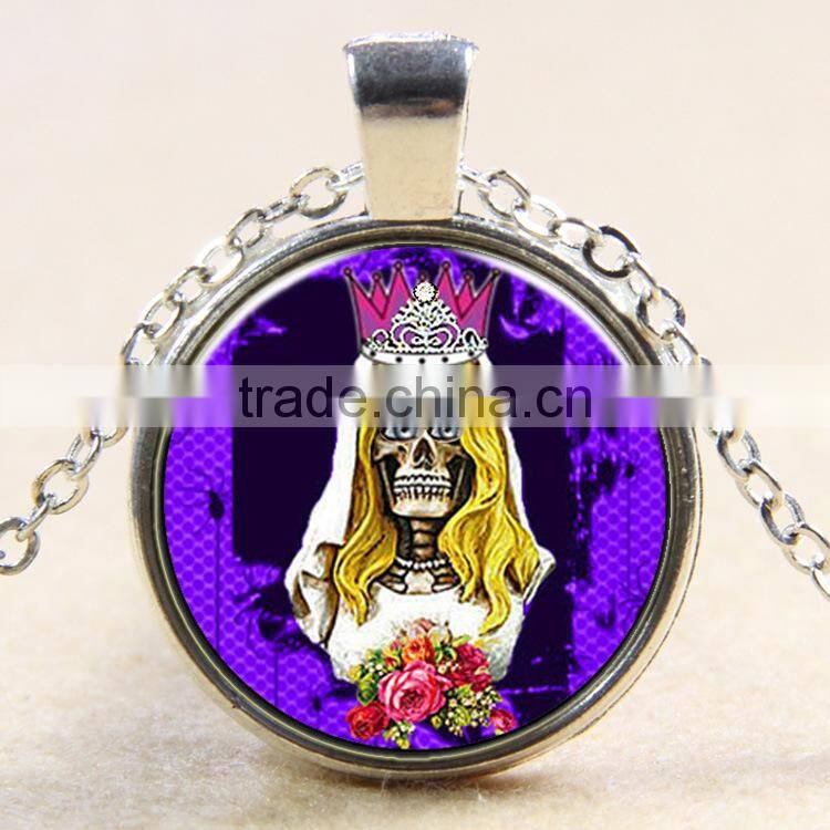 XP-TGN-S-123 Fashion Round Glass Cabochon Diy Image Colorful Dome Mandala Skull Time Gemstone Necklace For Ladies