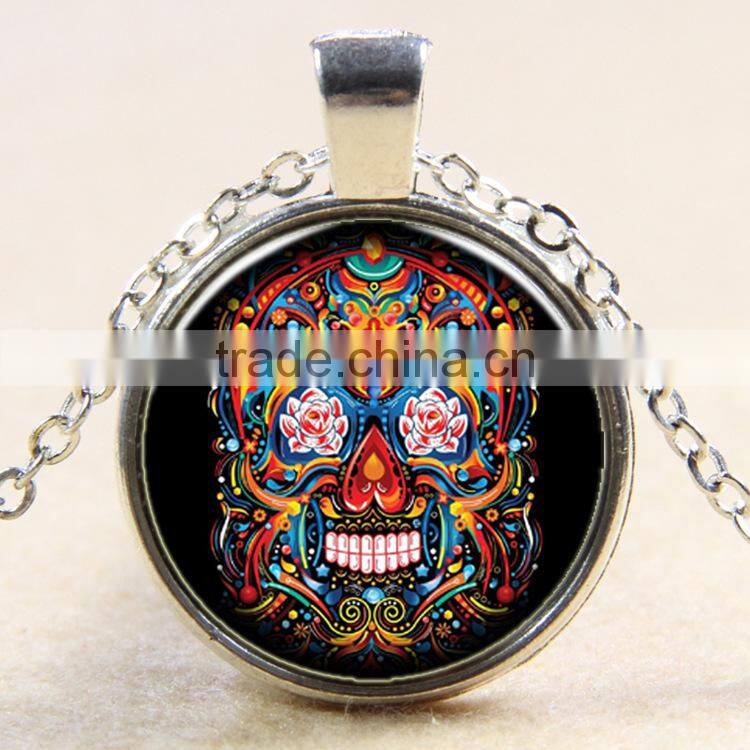XP-TGN-S-127 Fashion Jewelry Pendant Dome Vintage Meaningful Silver Skull Cabochon Necklace For Promotional Gift