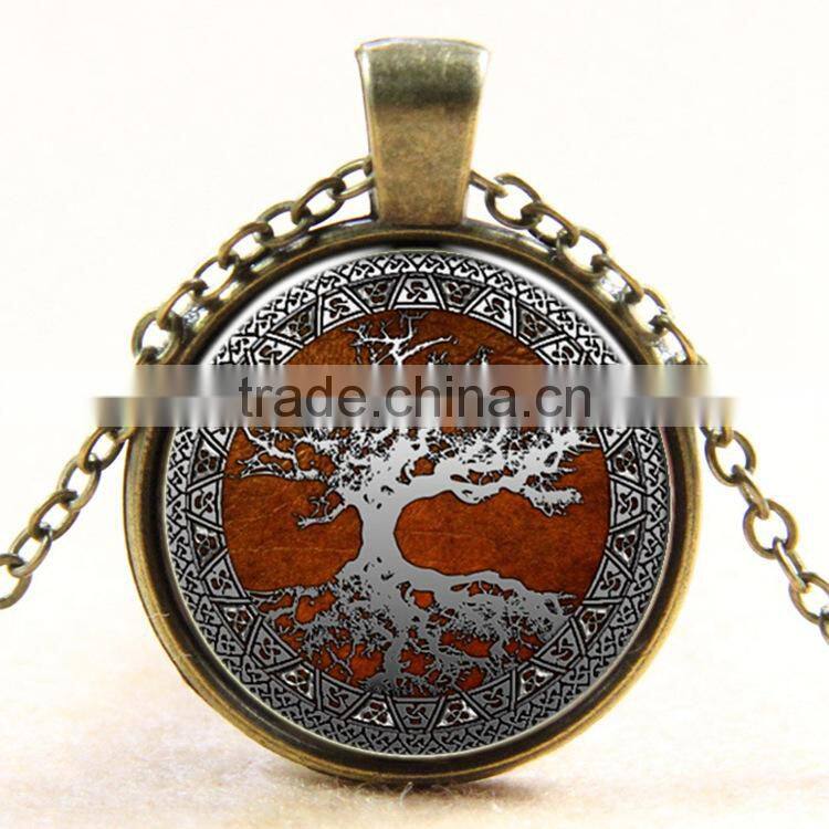 - XP-TGN-LT-167 Latest Mandala Round Cabochon Family Tree Diy Image Time Gemstone Necklace For Promotional Gift