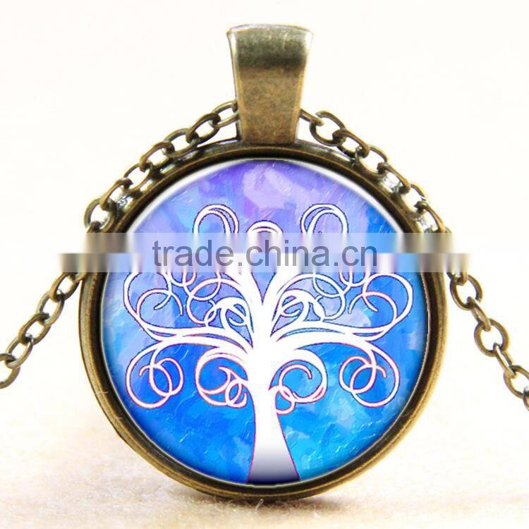 XP-TGN-LT-143 Fashion Jewelry Life Tree Charm Cabochon Family Glass Silver Gem Antique Time Necklace For Promotional Gift
