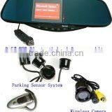 Car Rearview Mirror Bluetooth Parking Sensor Handsfree
