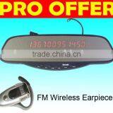 Rearview Mirror With FM Wireless Earpiece Promotion Bluetooth Handsfree