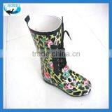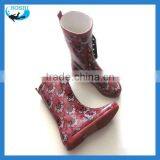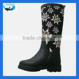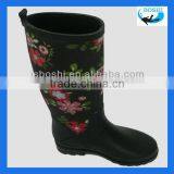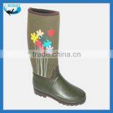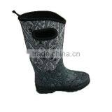 Knee High Lady's Fashion Neoprene Rain Boots With Beautiful Print Upper
