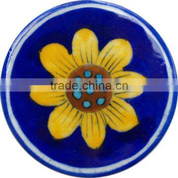 Unique Handmade Tea Coaster made up of Blue Pottery . This is Beautiful blue pottery article with lot of designs .Blue pottery is an art of adorning clay pottery items. And the name comes from Persian blue dye, which is used to color the clay. The pottery is made using various varieties of clay, and other materials.