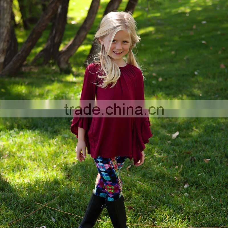 Girls 34 Ruffle Sleeve Tunic Burgundy, see photo of wholesale children clothing usa as below