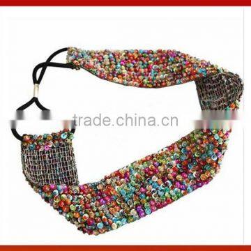 New Design Gold Crystal Beads Hair Band Elastic Headband Handmade Beaded Headband Woman Or Grils Headband With Beads