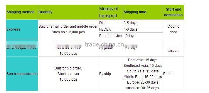 3. Shipping:Express(DHL,TNT,Fedex,UPS,EMS),by air or sea.