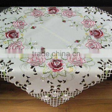 100% polyester Handmade embroidered floral tablecloth with cutwork