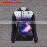 Fashion Custom Made Black Sublimation Zipper Hoodies