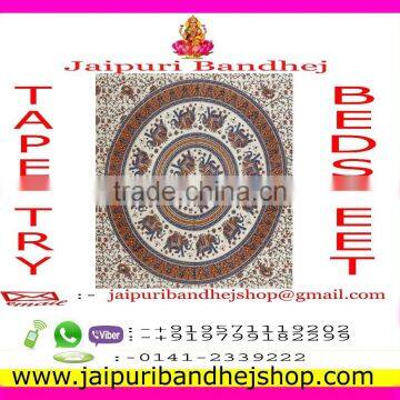 Jaipuri Bandhej Elephant Cotton Mandala Tapestry For USA