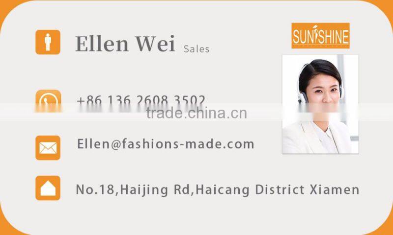 Xiamen Sunshine Garments Co.,Ltd is Sportswear manufacturer and trade company for 8 years.Main products are swimwear,fitness wear(sports bra,sports tights and sports tops).Quality is our culture;we have a professional team for fitness wear.