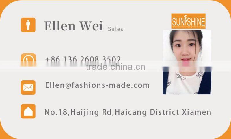 Xiamen Sunshine Garments Co.,Ltd is Sportswear manufacturer and trade company for 8 years.Main products are swimwear,fitness wear(sports bra,sports tights and sports tops).Quality is our culture;we have a professional team for fitness wear.