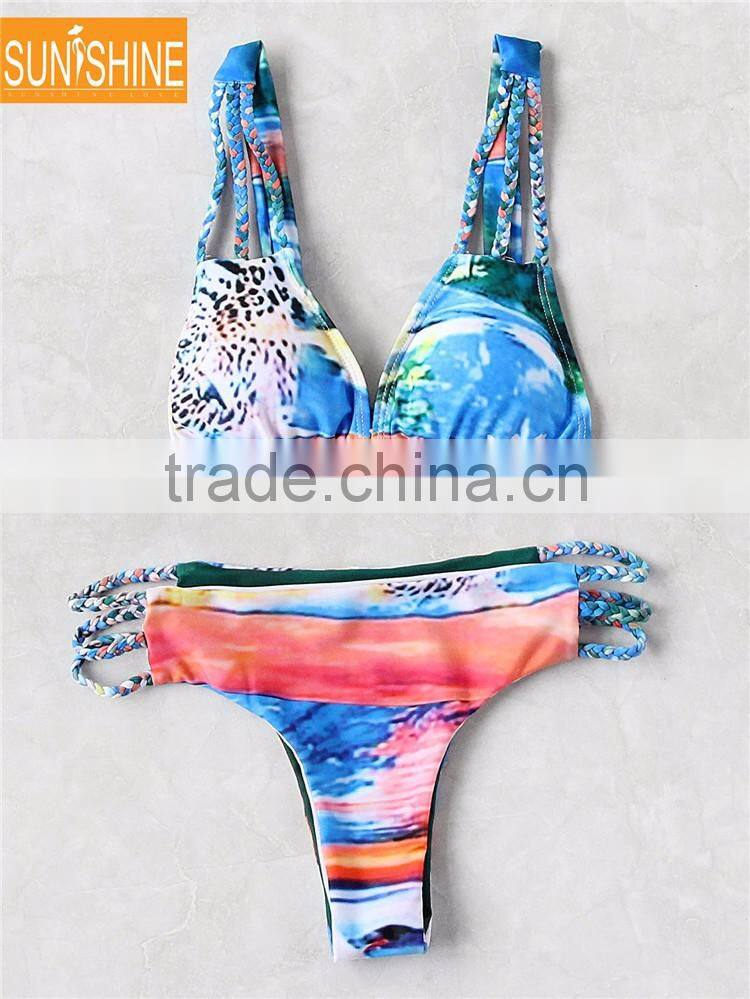 Double Braided Straps Bikinis Brazilian Cut Reversible Bikini