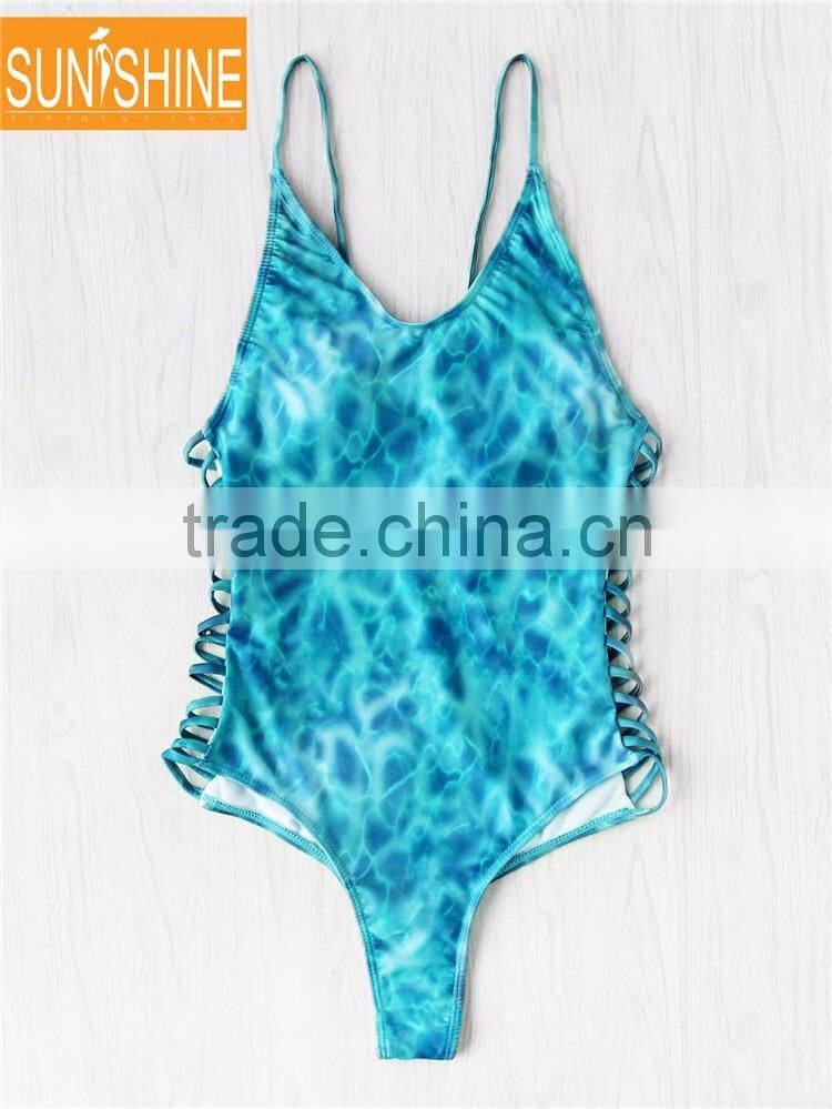 High Quality Custom Made One Piece Swimsuit Ladder Side Low Rise Bikini