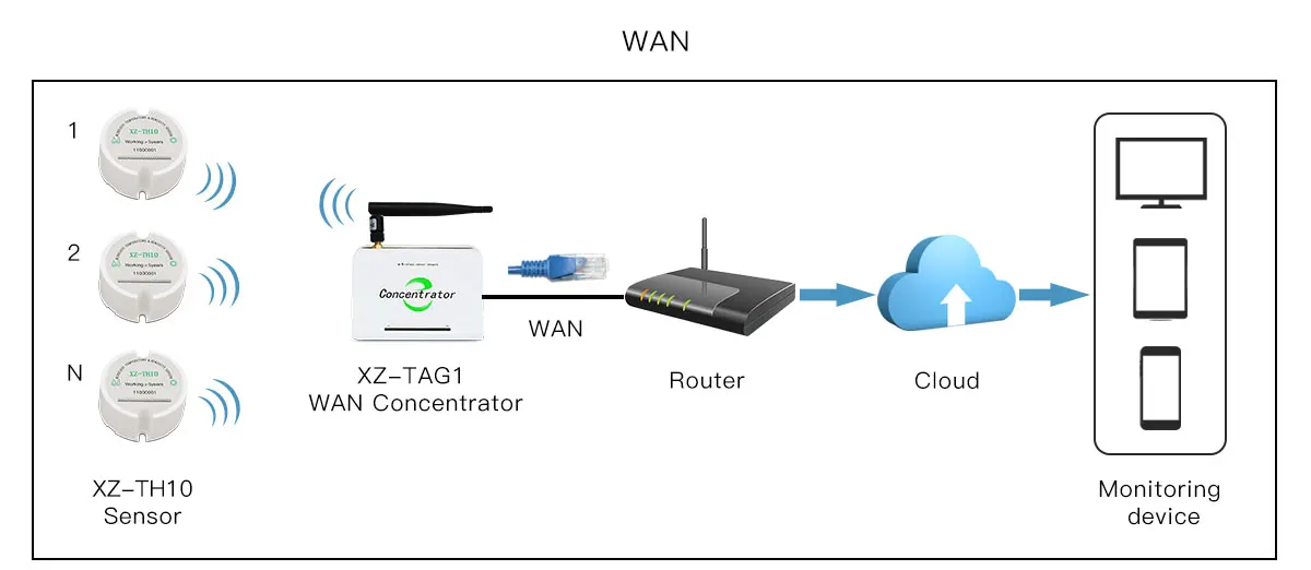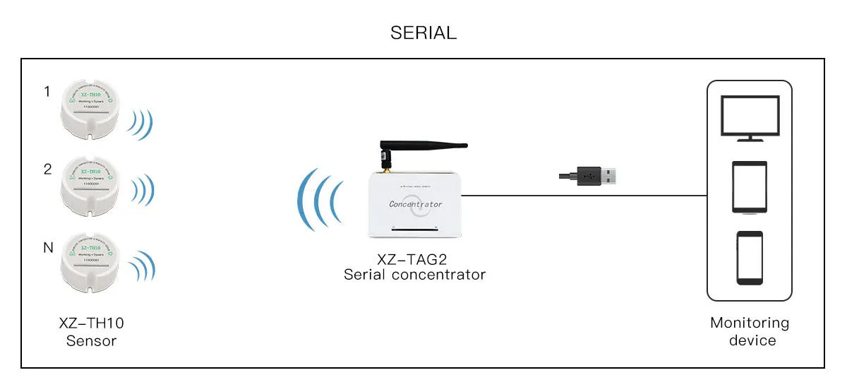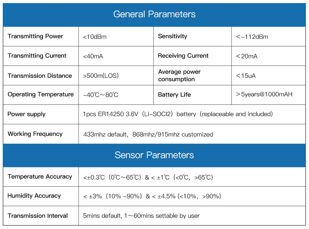 2.One receiver/concentrator/gateway can work with more than 100pcs sensors.