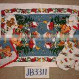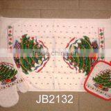 Christmas Pattern Quilted Oven Glove Pot Holders Set With Kitchen Towel