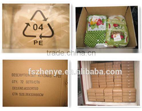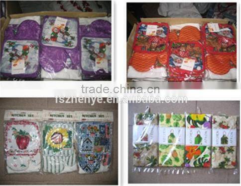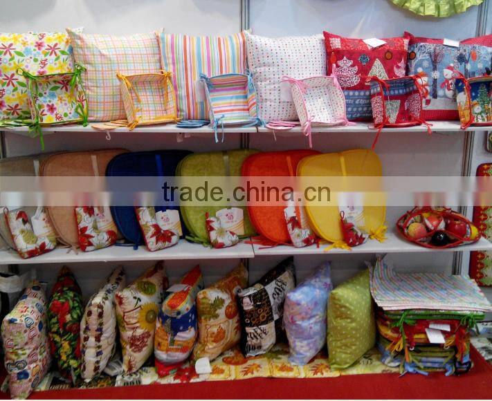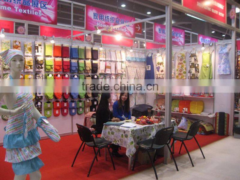 The factory specializes in the production of various kitchen textile, aprons, oven mittens, potholders, towels, table cloth, tablemats, table runners,napkin, bathroom mats, cushion covers, chair pads, iron board covers, bread baskets, bread bags, tea covers and so on. Presently, our products are sold all over the world especially in such countries as the USA, Europe, South America, the middle east, Australia and Japan.