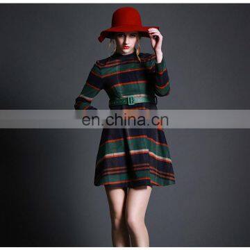 Striped Quality Temperament Checker Skirt / A Line Long Sleeve Skirt