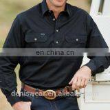 Men's100% Cotton Full Button Long Sleeves Double Chest Pocket Workshirt