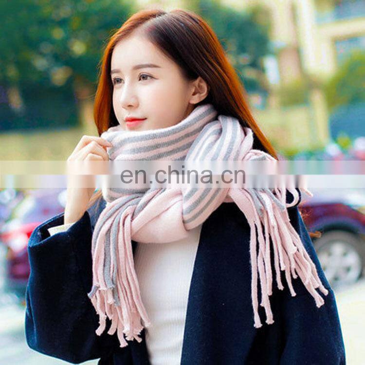 Stripe woolen shawl lovers tassel winter imitation cashmere knitted vertical thick scarvesarf