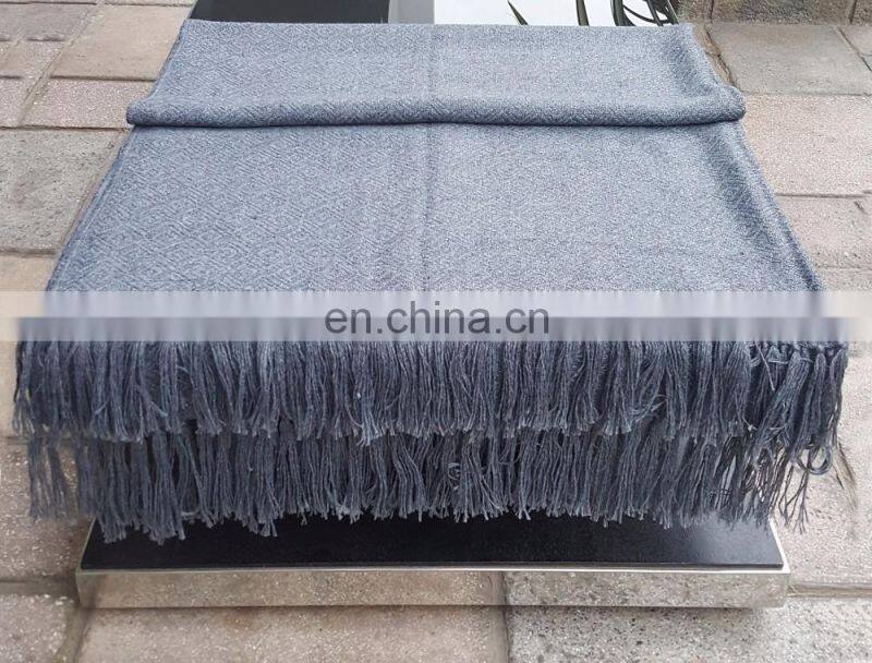 Alpaca and acrylic blanket of gray entire color with fringes, excellent quality and very soft. You can mix colors in your order.