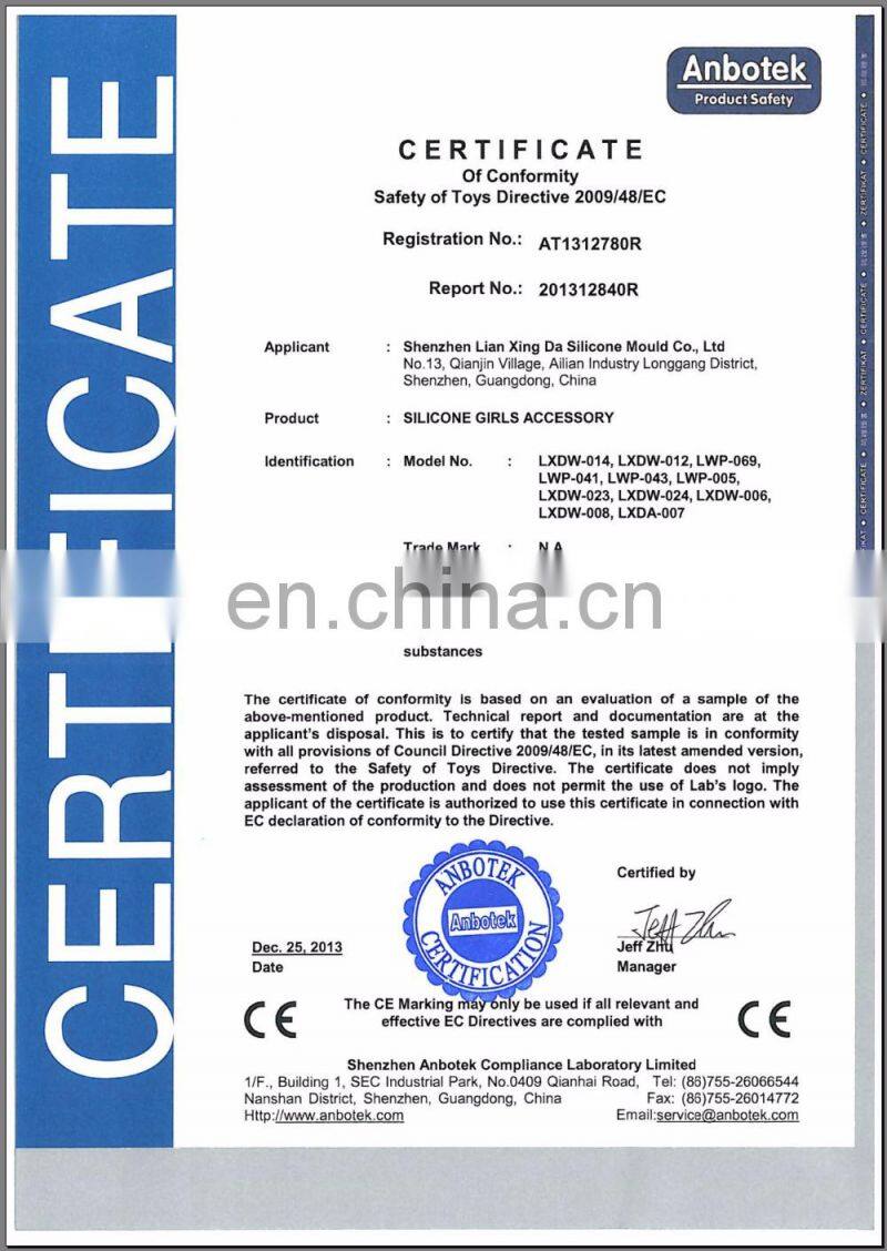 ShenZhen Lian Xing Da silicone mold Co.,Ltd is located in Shen Zhen city of china. As one professional manufactory of all kinds of silicone product for many years. We own one strong experienced R&D team to develop new designs and items monthly.