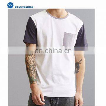 2017 Pure And Fresh Custom Men Shortsleeve Pocket Shirts Contrast Color O-collar Loose Style T-shirt