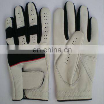 A superb quality Cabretta Leather Golf Glove Full Cabretta Leather Palm Front-Back Knuckles Black Lycra