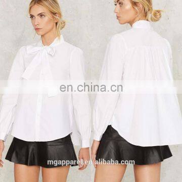 2016 New designs white long sleeve cotton blouses for women
