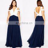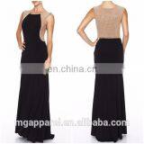 Latest Popular Fashion Cool Chiffon Cross-back Color Block Mesh Panel Prom Dress