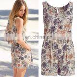 Women Playsuits Summer 100% Viscose Floral Sexy Open Back Playsuit Wholesale