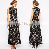 China Guangdong Factory OEM Classical Vintage Black Lace Long Prom Dress With Belt