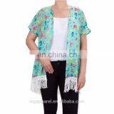 Cheap Wholesale Floral Print no Buttons Sheer Chiffon Ladies Vest With Fringe