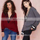 Fashion Deep V-neck With Stripes Knit Sweater Ribbing Detail Long Sleeve Woman Knit Wear