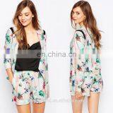 China Newest High Fashion Fancy Open Front Long Sleeve Floral Printed Women Blazer