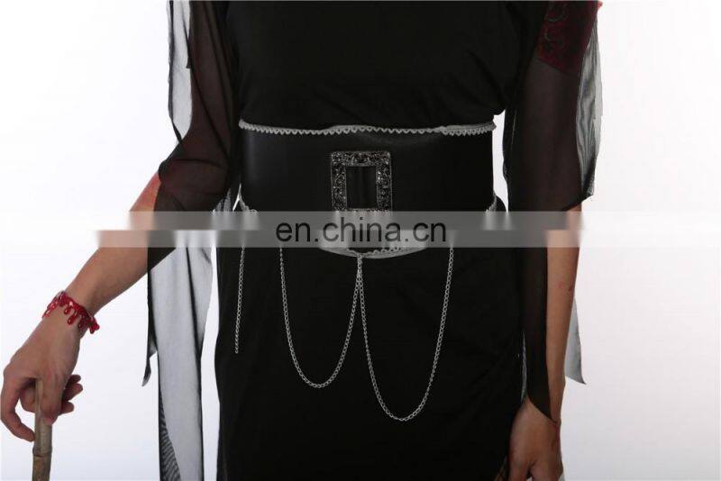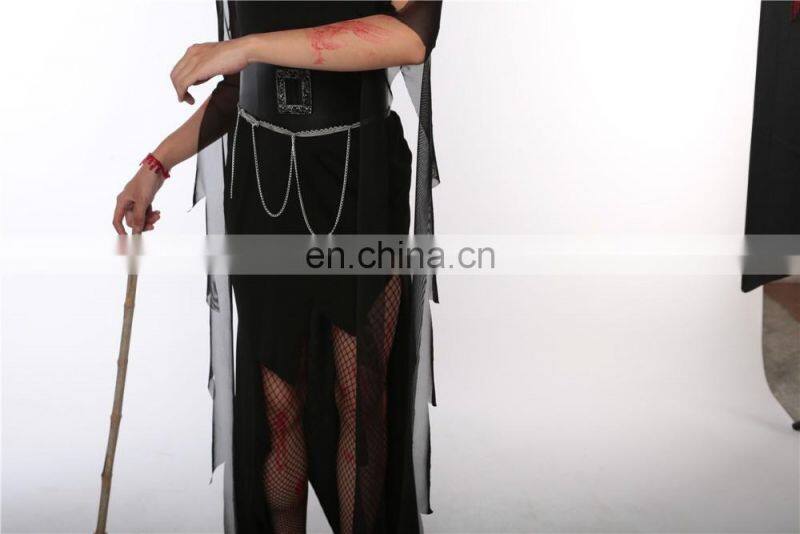 Cheap Price Spell Caster Dark Long Dress Sexy Black Witch Costume