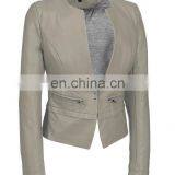 Women's Faux Leather Long Sleeve Collarless Imitation Leather Jacket Blazer Bomer Jacket Bolero